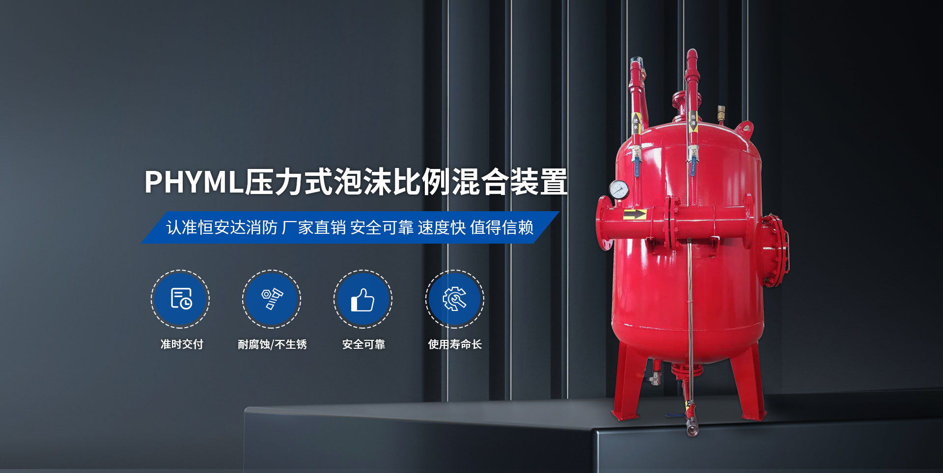 衛輝市恒安達消防設備有限公司,位于中國旅游城市比干故里——河南省衛輝市,公司位置緊鄰 107 國道、新濮公路、京珠高速,交通十分便利。  我公司主要產品有:PHY/PHYM系列壓力式比例混合裝置、消防增壓穩壓給水設備、半固定式泡沫滅火裝置、PC 系列泡沫產生器、PS/PP/PL 系列消防炮、PSG 型泡沫消火栓箱、七氟丙烷滅火裝置、水成膜泡沫滅火劑、合成泡沫滅火劑、抗溶水成膜泡沫滅火劑、抗溶泡沫滅火劑、高倍泡沫滅火劑、A 類泡沫滅火劑、水系泡沫滅火劑、消防泵等。并承接老油罐帶油無火花開孔消防改造工程。以上設備,廣泛用于石油、化工、機場、碼頭、電廠、水上船舶、油庫等場地的泡沫滅火裝置。  我公司擁有各種工藝先進的專用設備 60 余臺套,各種試驗檢測設備 10 余臺套,擁有數十名技師等人才。本公司所有產品均通過國家消防裝備質量監督檢驗中心的型式檢驗。我公司用科學的管理模式,雄厚的技術力量,嚴格的質量保障體系,確保產品質量穩定可靠,快捷和完善的售后服務,樹立我們的企業形象并為消防事業作出貢獻。  公司自創建以來,始終堅持“規范質量行為,滿足顧客要求”的質量和經營方針,一直堅持“以質量為基礎,以信譽為生命、以公平的價格贏得客戶”的信念,竭誠為廣大客戶和社會各界提供產品和良好的服務。